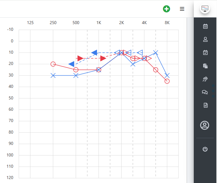 אודיוגף מערכות השקיעה שעות פיתוח רבות בליויי צמוד של צוות אודיולוגיים בכירים ומנוסים, כדי לתת לכם את הכלים הטובים ביותר לתיעוד כל סוגי הבדיקות האודיולוגיות. באמצעות העכבר או טבלת ה-Audiogram Data תוכלו להזין את נתוני הבדיקה בקלות וביעילות. במהלך הבדיקה תוכלו לראות על המסך זה לצד זה אודיוגרמות מהיסטוריית הבדיקות של הפציינט ולהשוות בינהן, ובסיומה המערכת תחשב ותזין אוטמטית את ערך ה-SRT. כל הבדיקות נשמרות בתיק הפציינט וניתנות להדפסה/ שליחה בדוא"ל, עם אפשרות לשידור הבדיקות לקופה"ח לצורך התחשבנות.